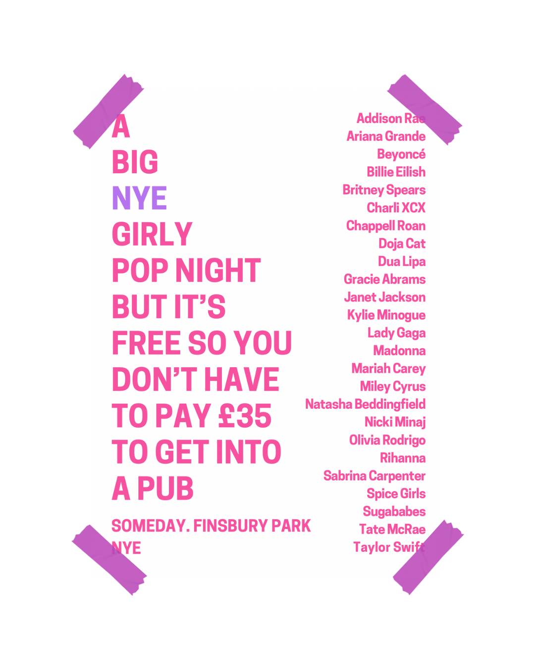 A BIG NYE GIRLY POP NIGHT